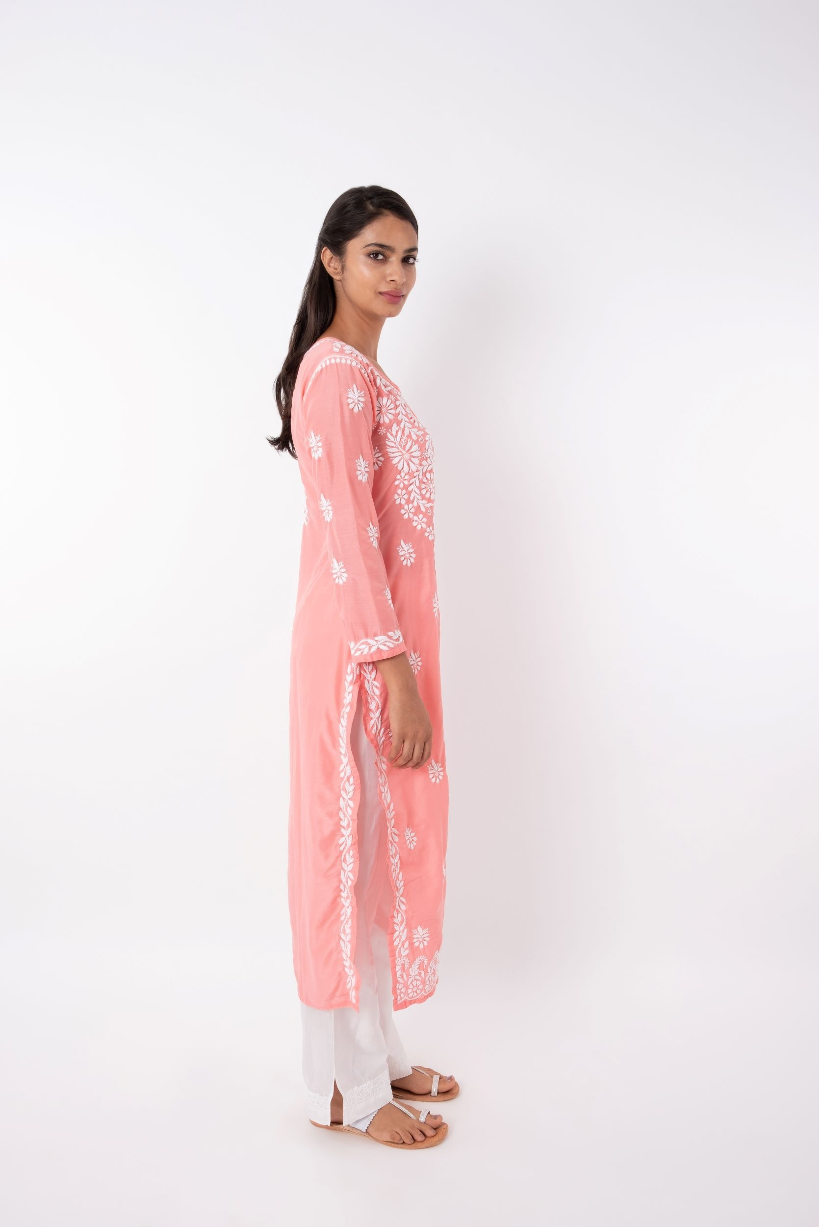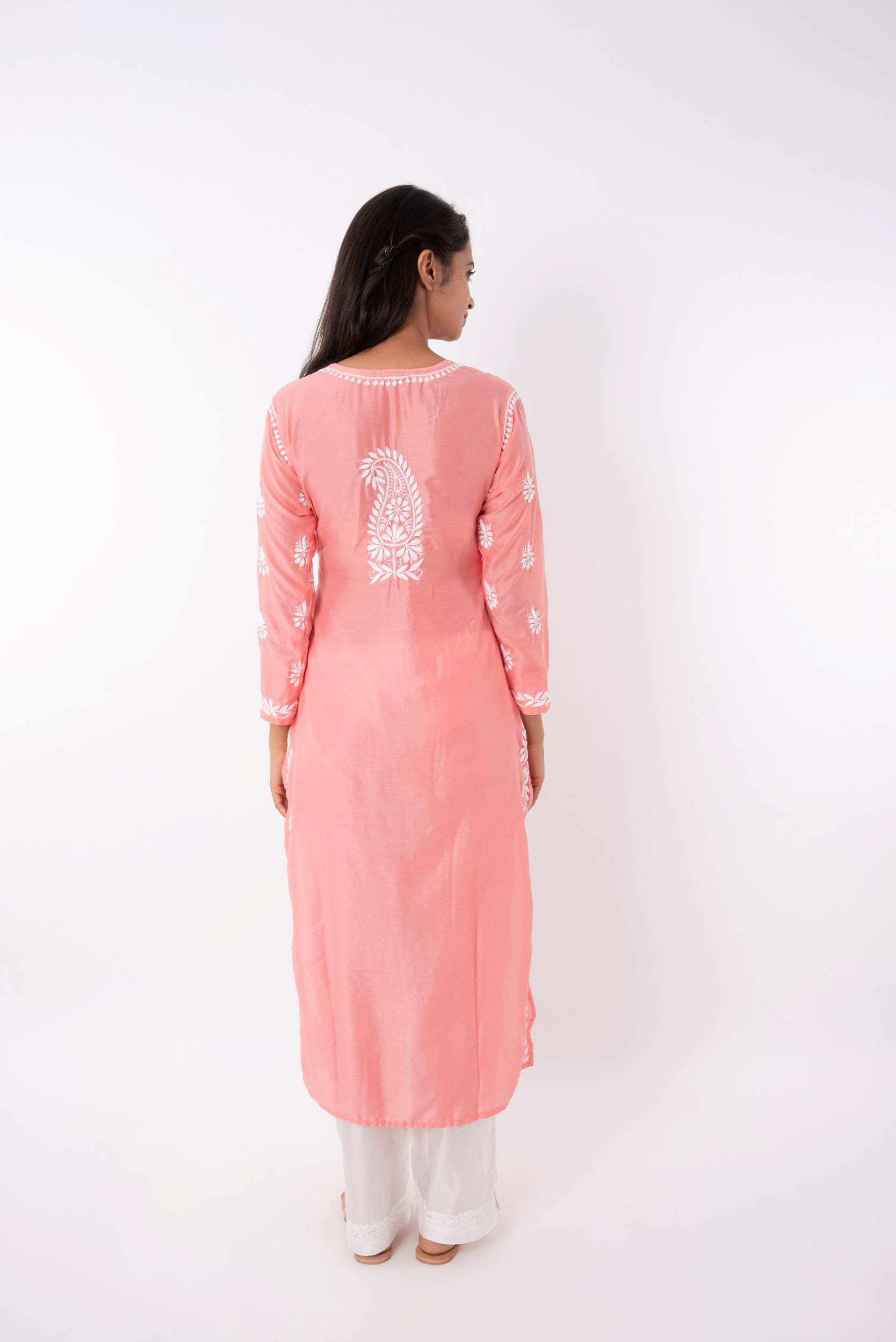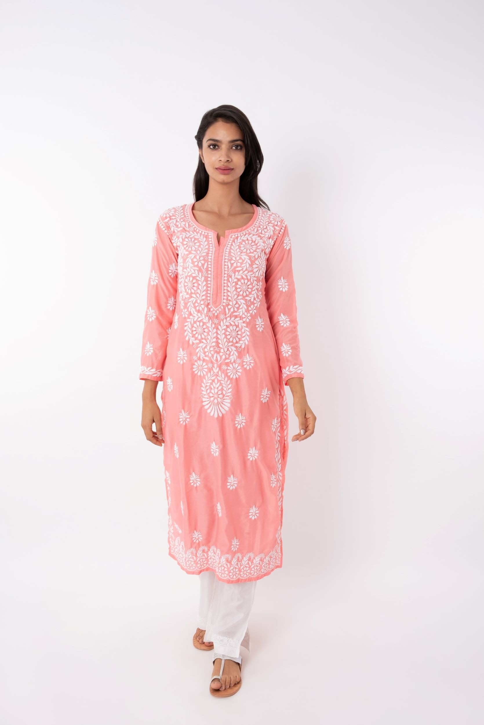 Cotton Muslin Fabric Chikankari Embroiderd Long Kurta